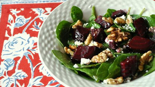 Nutty spinach beet salad